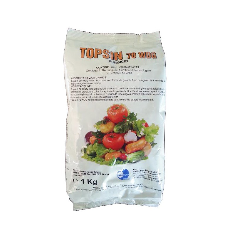 Funicidul Topsin 70wdg It is a systemic fungicide with preventive and curative action. In the case of the culture of Colza, it is recommended to combat putrefaction, alternarious and flour. The recommended dose is 1 kg/ha and it is advisable to apply in the vegetation.